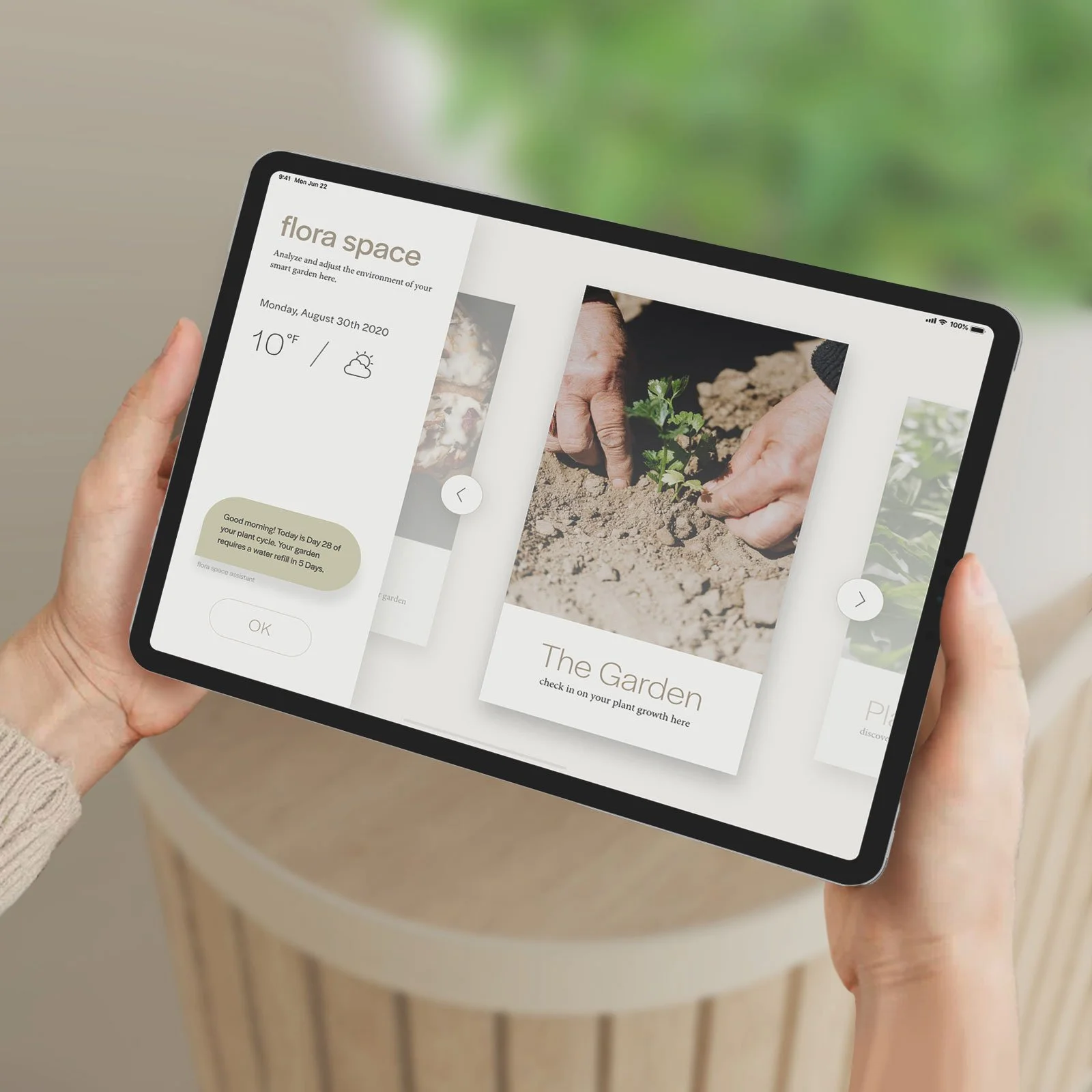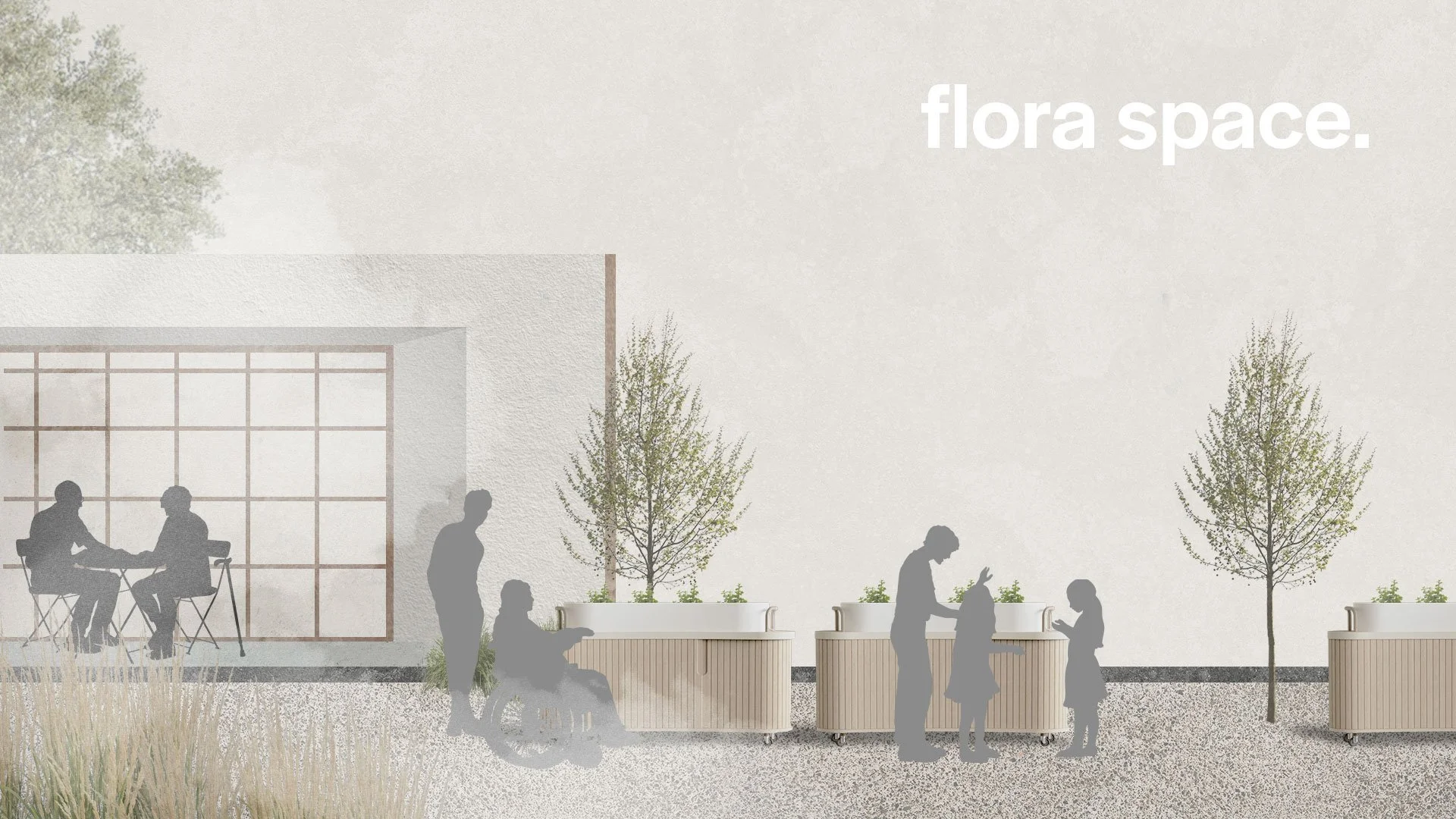 Flora Space is a hydroponic gardening product concept that combines the experiences of traditional gardening with the technology of smart hydroponic watering systems to introduce adaptive gardens to individuals in assisted living residences. Unlike traditional gardening, the utilization of a hydroponic watering system offers users with the choice of autonomous, hands-on or hybrid gardening experiences.
