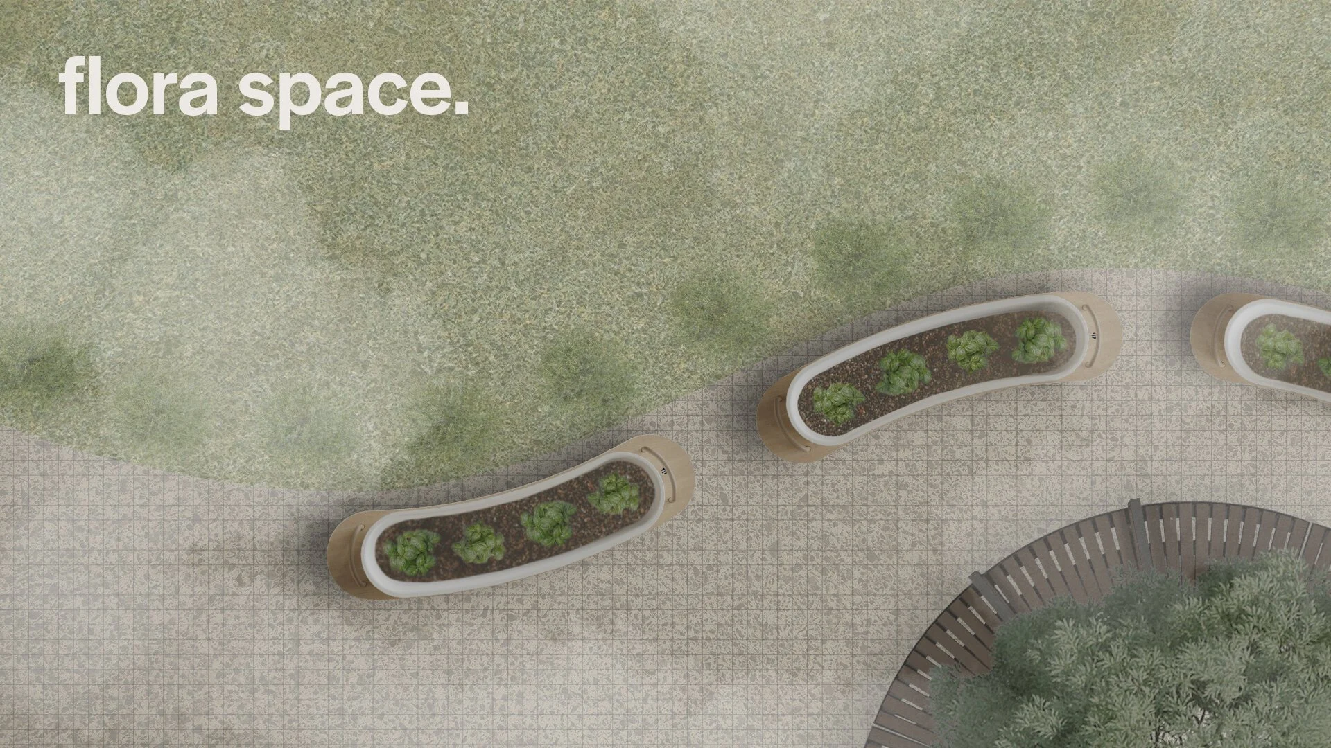 Flora space promotes social interaction with its spacious layout and dual workstations, which foster the notion of gardening as a collaborative activity. Multifunctional features such as the workstations and handlebars serve as tool storage and weight support, which maximize space efficiency. This helps to ensure that Flora Space seamlessly integrates into its environment while addressing user needs.