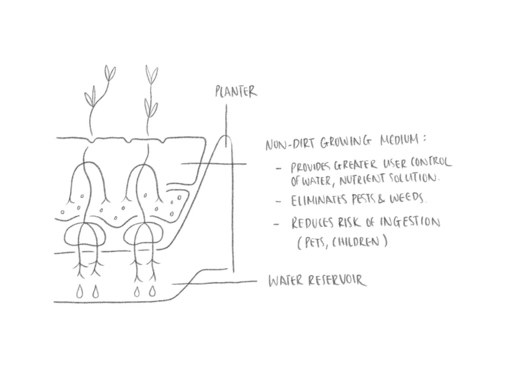 Hydroponic gardening products utilize a system of water and a nutrient solution that enables the user to grow plants without soil. The omission of soil increases the garden’s yield within a smaller footprint, while also addressing pests. However, the physical experience of harvesting produce from a hydroponic garden is extremely different from harvesting produce traditionally, creating an emotional distance between the user and their garden.